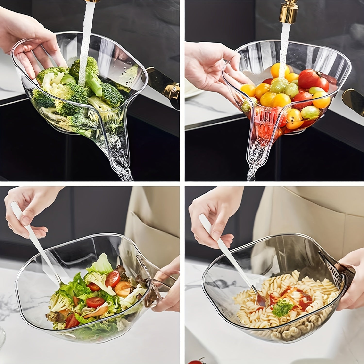 1/2pcs Versatile Kitchen Draining Basket - Sturdy Plastic, Easy Wash, for Vegetables, Pasta & Fruit