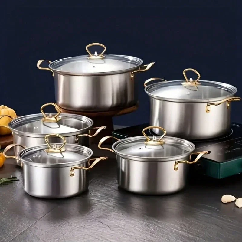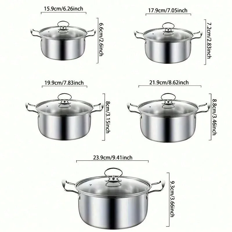 10-Piece Stainless Steel Cookware Set - Soup Pot/Frying Pan/Sauce Pan with Lids, Fit Induction/Electric/Gas Stoves