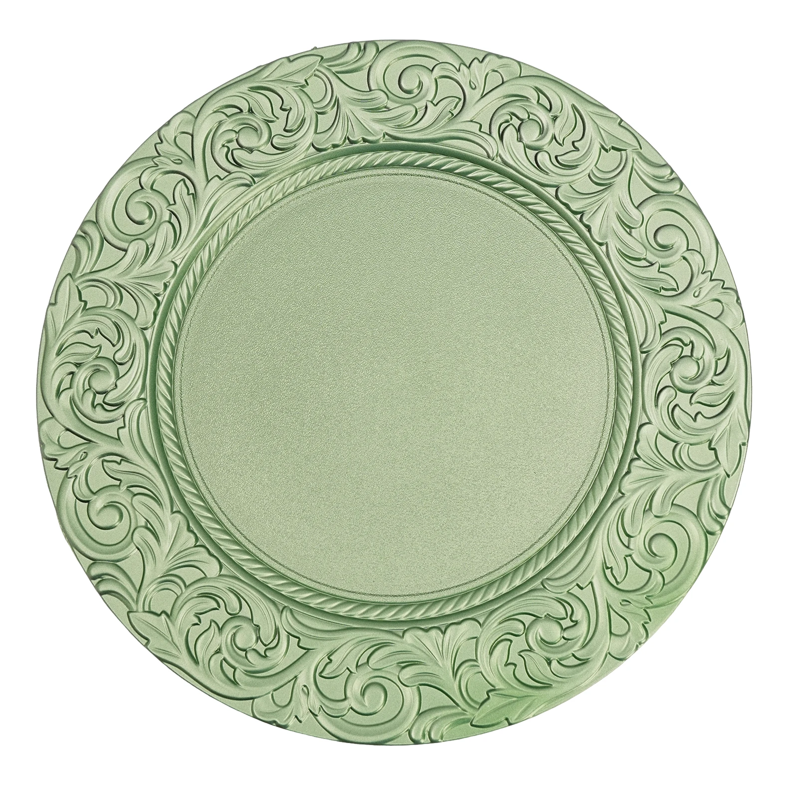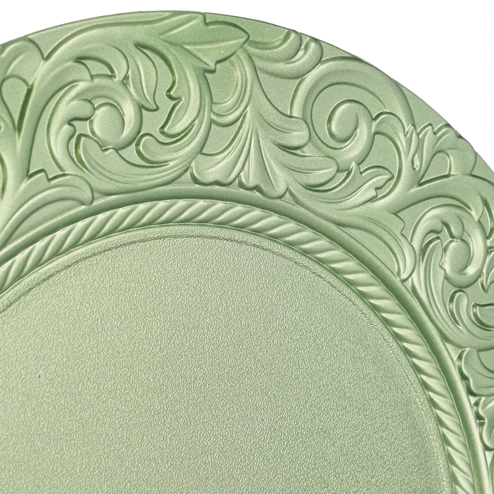 This set of charger plates can add elegant decorations to your banquet table for weddings, family gatherings, and holiday celebrations. The high-quality PP and the beautiful texture on the surface make each plate sturdy and durable and give it a beautiful and glossy appearance to be a great addition to your table.