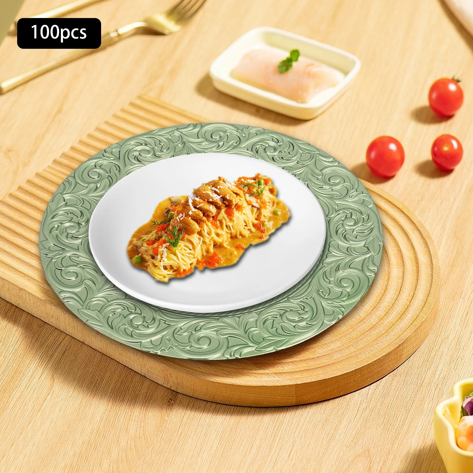 100PCS Charger Plates Set 13 inch Round Charger Plates Kitchen Dish Charger for Wedding Party Decoration Silver/Green