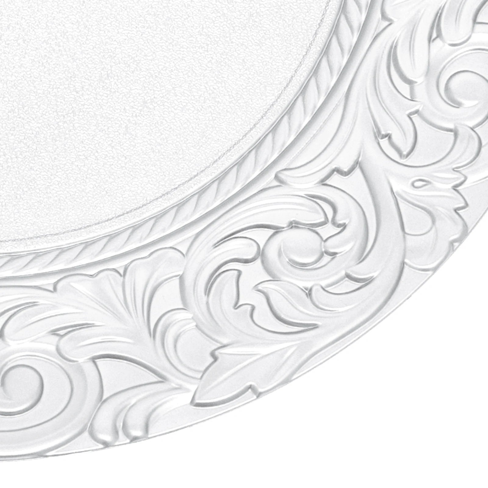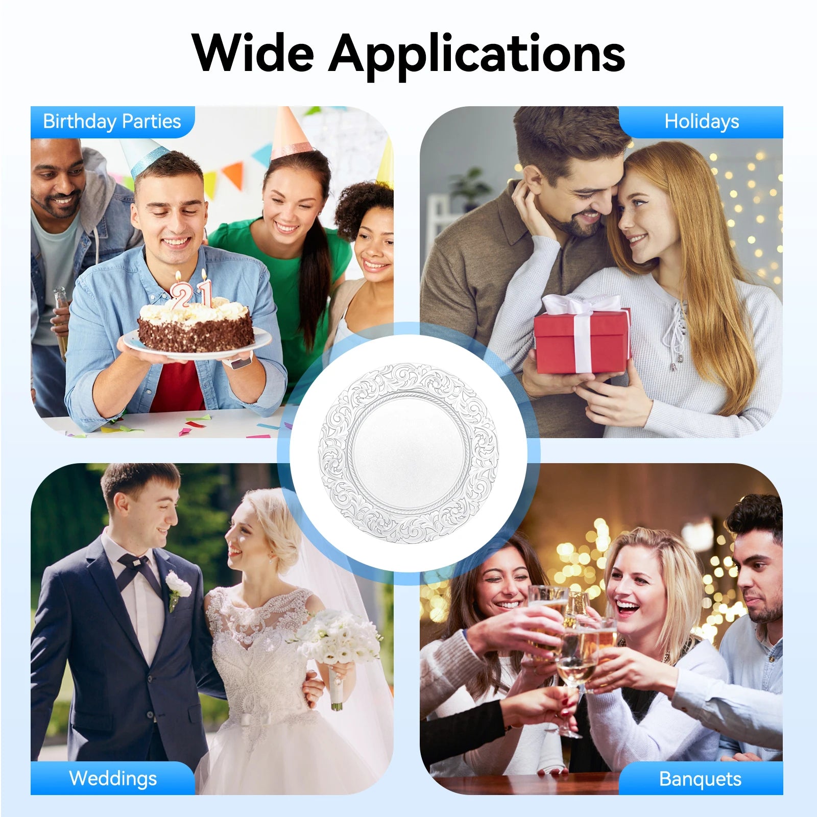 Charming Appearance: The simple round shape, elegant silver color, and beautifully embossed rim make these products premium decorations for your table, especially when matching with other dinnerware sets.