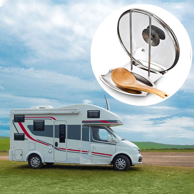 1pc Stainless Steel Pot Cover Rack, Household Kitchen Storage Rack, Pot Cover Storage Tray, Spoon Rack, Table Top, Seated With Tray