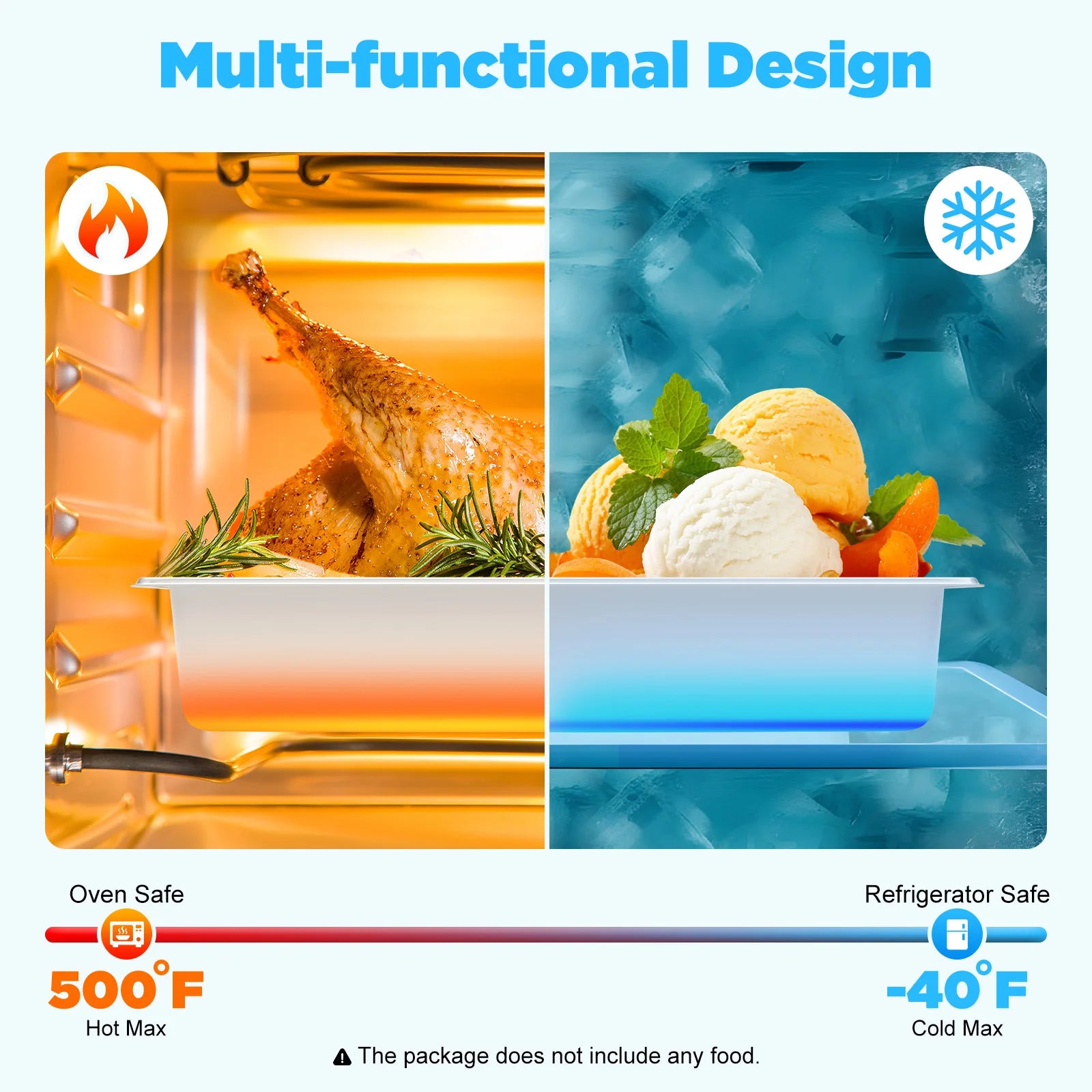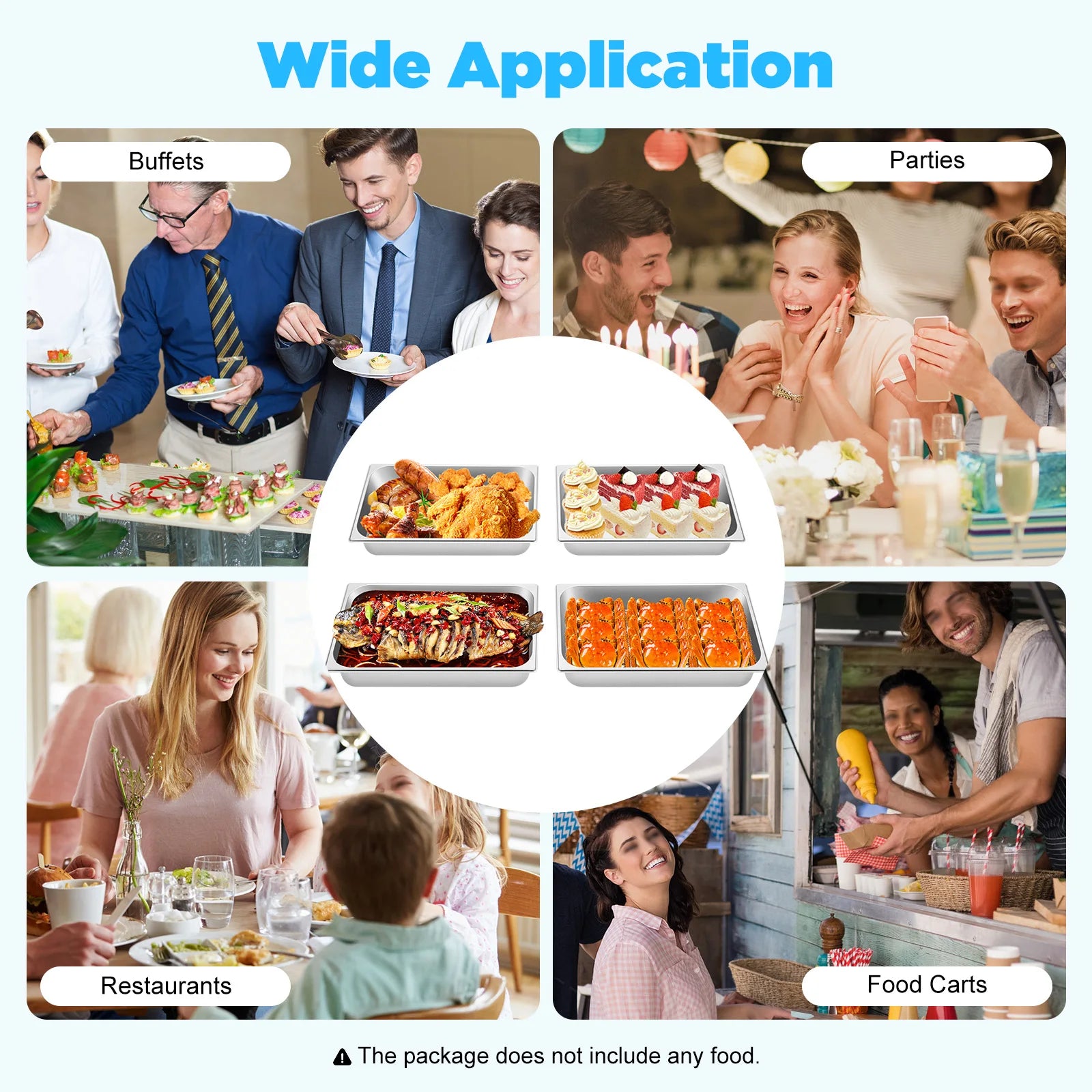 Application: It is suitable for commercial or personal uses, such as restaurants, hotels, catering companies, buffets, snack bars, food carts, parties, and families to store ice cream, main course, fruits/vegetables (such as carrots, peas, corn, and green beans), bread, etc.