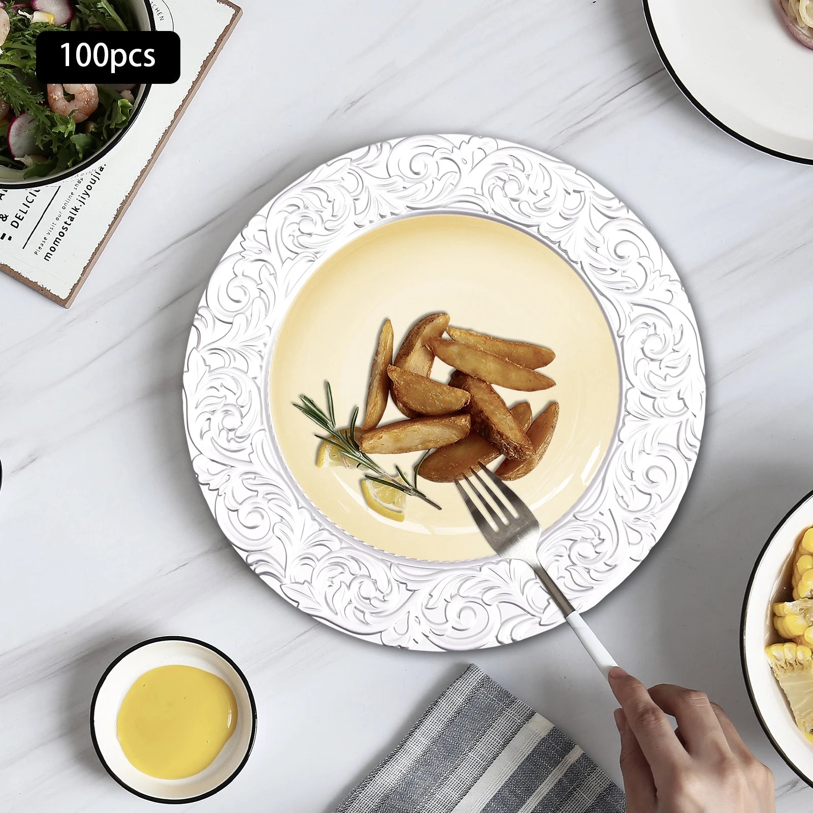 100 Pieces a Set: This large quantity set of plates is not only suitable for home use, but also for large events, hotels, restaurants, and other commercial venues.