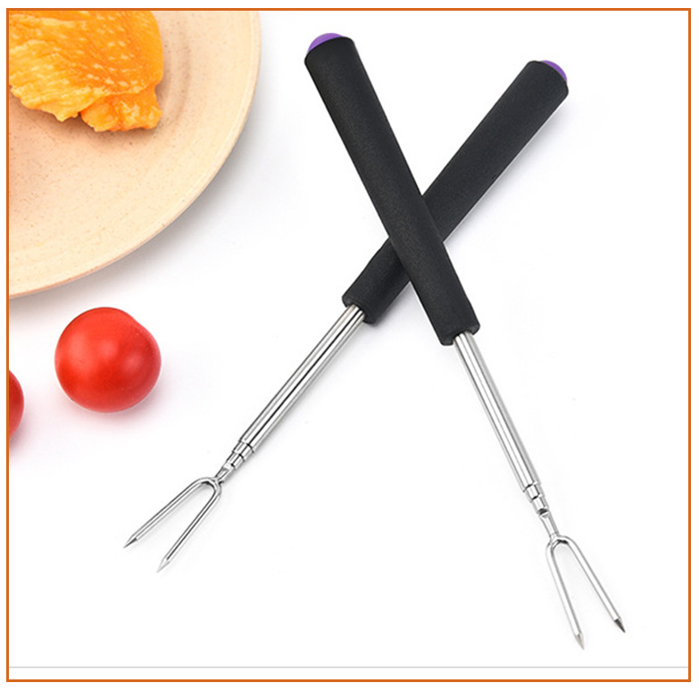 Retractable Stainless Steel Fondue & BBQ Fork ? Extendable Multi-Purpose Kitchen Tool