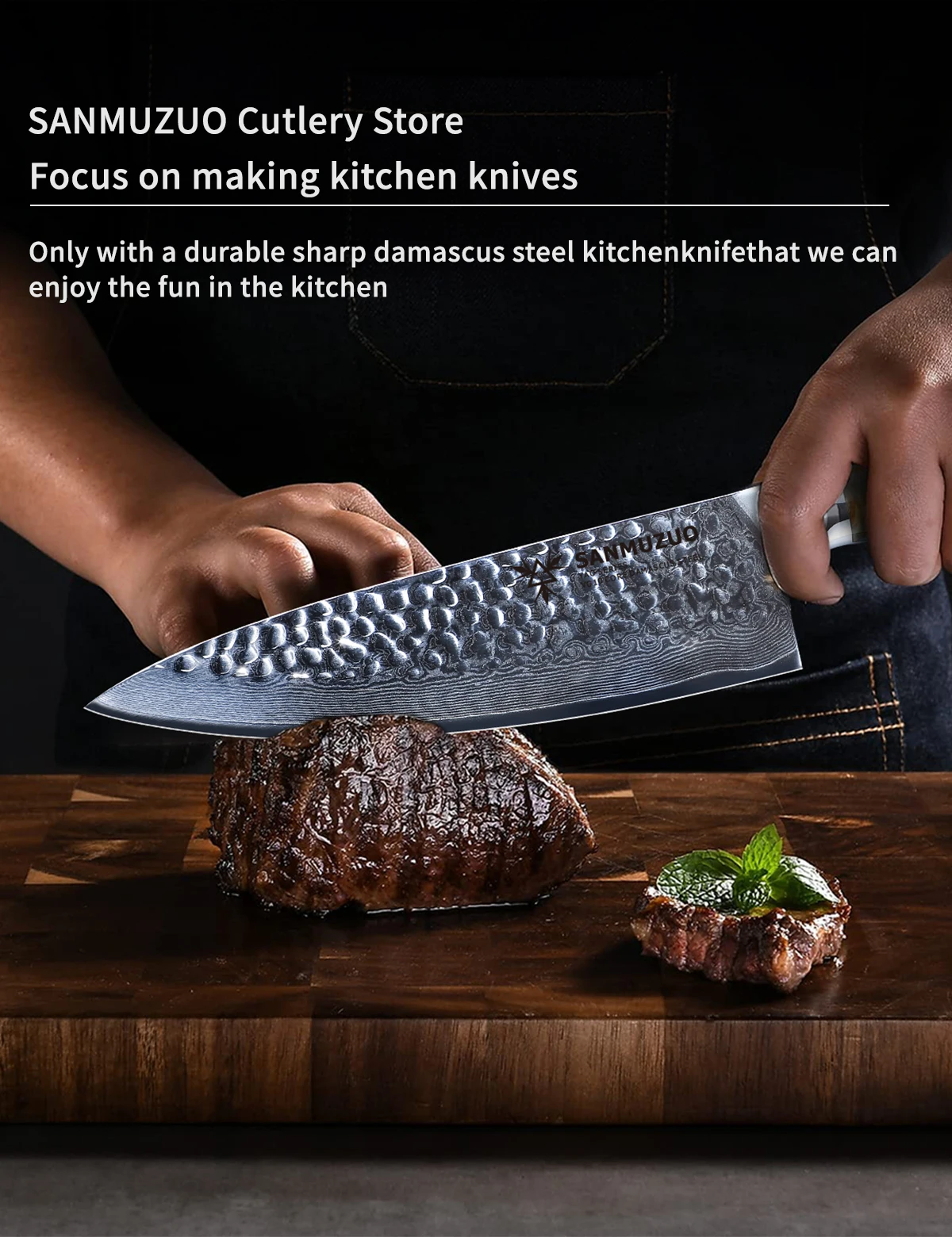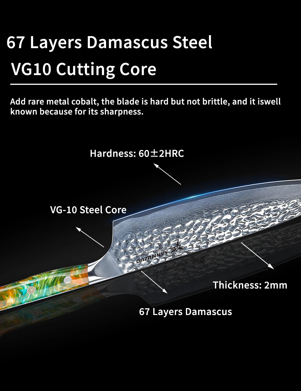 SANMUZUO 8 Inch Chef Knife - YAO Series - Premium Damascus Steel Kitchen Knife with Resin Handle - Suitable for Meat&Vegetables